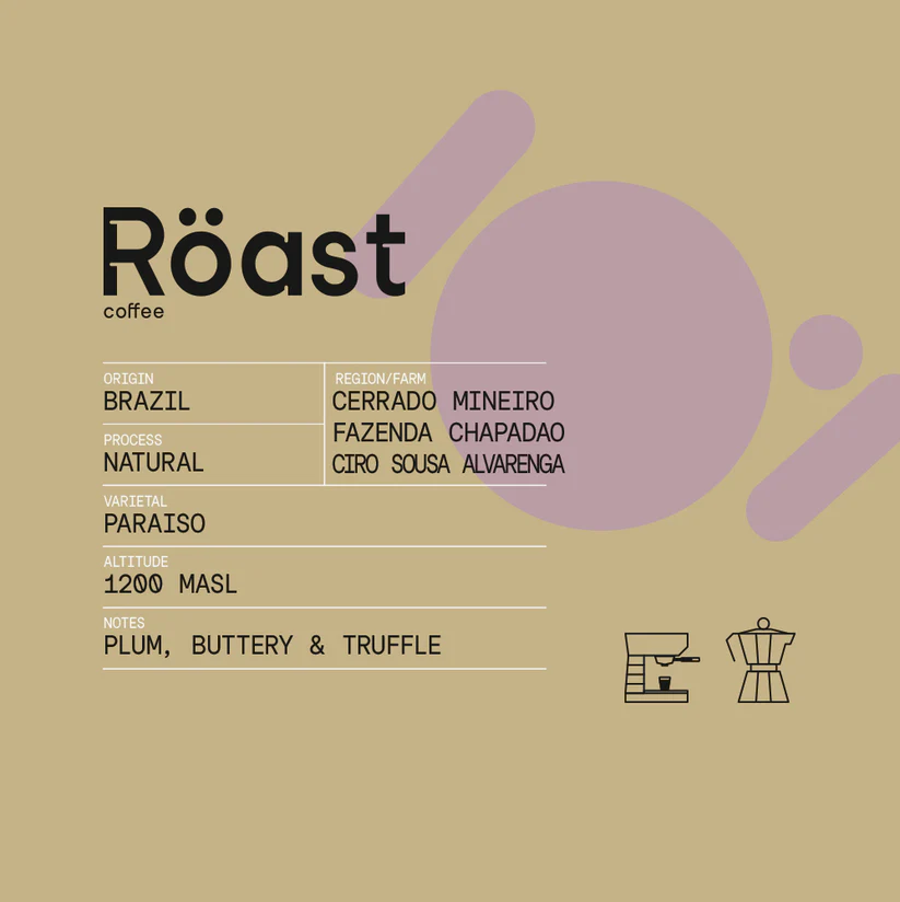 A Fazenda Chapadão farm a Cerrado Mineiro szívében található, és a brazil kávétermesztés egyik modern, mégis hagyománytisztelő zászlóshajója. A farm alapítója, Ciro Sousa Alvarenga eredetileg szarvasmarhatartással foglalkozott, ám fiaival, Gustavóval és Rodrigóval együtt hamar felismerte, hogy a régió egyedülálló adottságai sokkal több lehetőséget rejtenek, mint az állattenyésztés. 2014-ben a család úgy döntött, hogy teljesen a kávétermesztésnek szentelik életüket, és azóta szenvedéllyel, innovációval és kitartással fejlesztik a farmot, új fajtákat ültetve és fenntartható módszereket alkalmazva. A Brazil Fruta Doce ennek a családi elhivatottságnak az eredménye: egy Paraiso fajta, natural feldolgozású arabica kávé, amely minden cseppjében a brazil termőföld erejét és karakterét hordozza. A natural eljárás során a kávébab a gyümölcshússal együtt szárad, így magába zárja a gyümölcs természetes cukortartalmát és aromáit. Ennek köszönhetően a Fruta Doce ízprofilja friss, gyümölcsös és édes tónusokkal is gazdagabb.